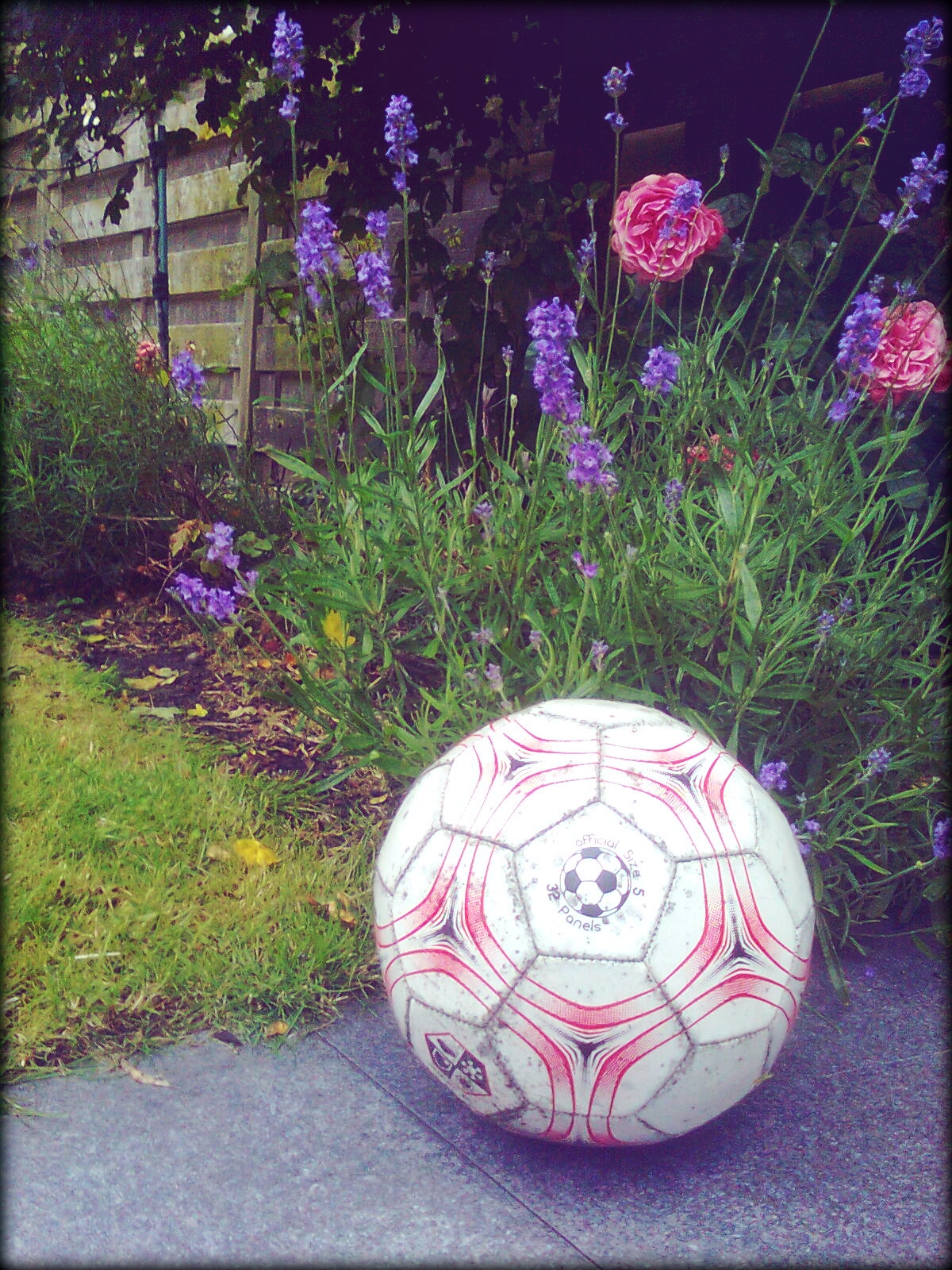 Ik wijs naar de bal. ‘Ik heb dat ding tegen mijn kop gekregen.’