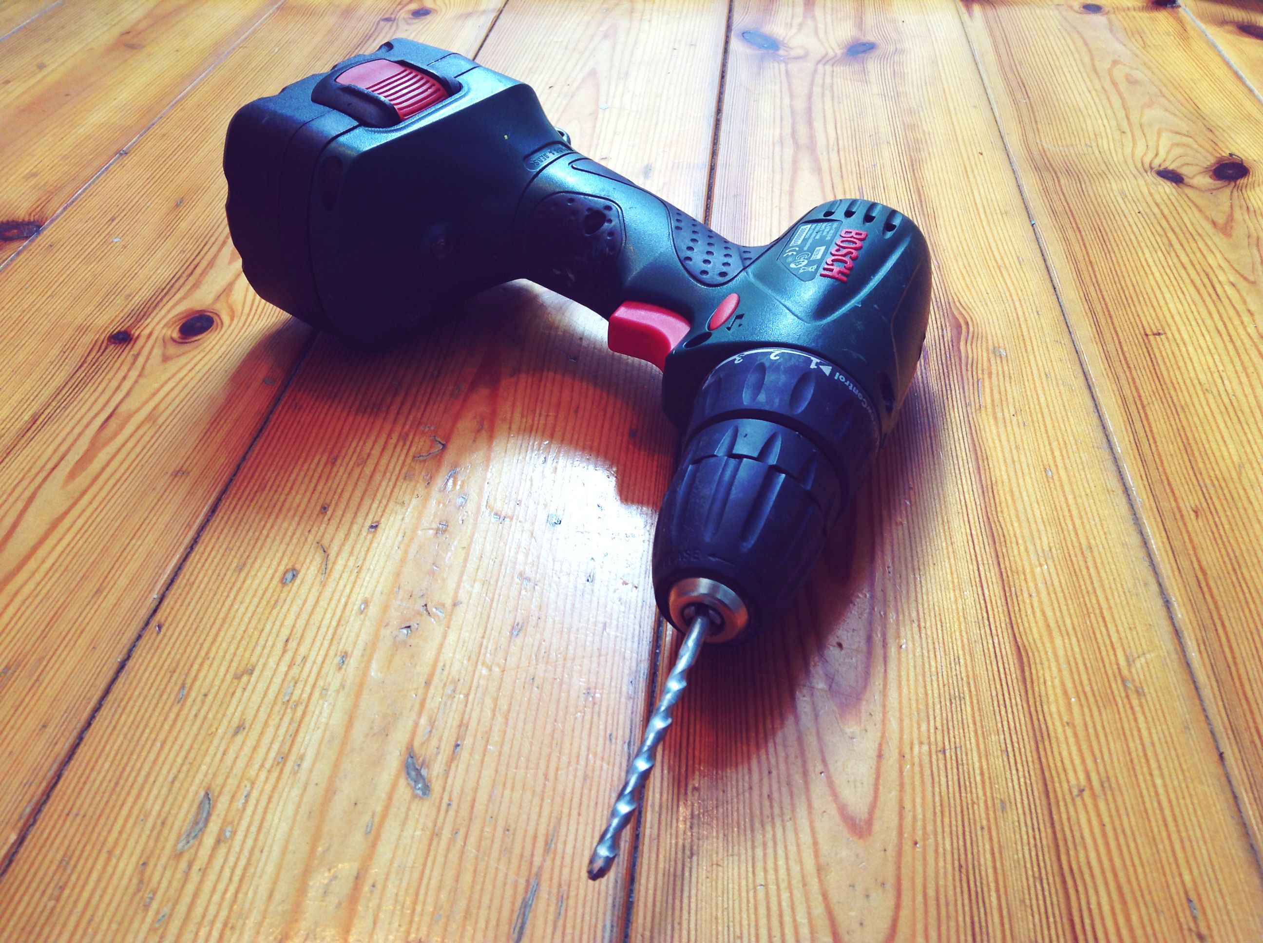 Ik knik. Gisteren heb ik op Google van alles over boren opgezocht, welke soorten boren er bestaan, in welke maten, en ook over schroeven en pluggen. En over waterleidingen en elektriciteitsdraden, op welke manier die in de muur zitten, als alles volgens de regels is gelegd tenminste. Want daar kun je dus doorheen boren.