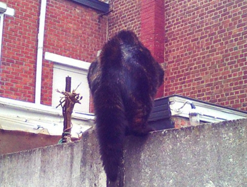 Wacko gromt eerst stil, dan luider. Ze kijkt vanop de vensterbank naar buiten. Er moet een kat in de voortuin zitten, daar kan ze niet tegen. Hoewel ze langs voren niet buiten gaat beschouwt ze de voortuin als haar territorium, haar bezit, net zoals dit hele huis en alles wat erin staat, wij inbegrepen. Haar silhouet is zichtbaar door de rolgordijnen: een bol haar met hanenkam en dikke staart. Ze begint er nu al bij te blazen ook. Misschien zijn het twee katten, of is het die grote kater van aan de overkant van de straat.